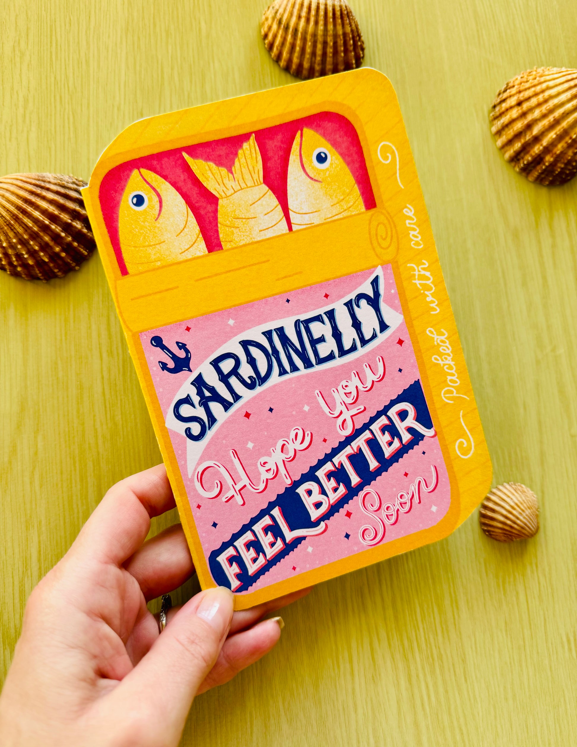 1 × Sardinelly — Hope You Feel Better Soon card — choose Tin-Shaped (die-cut) or Standard (rectangular).