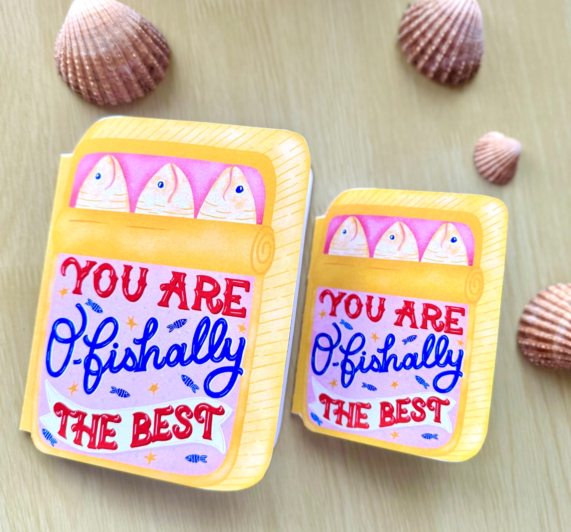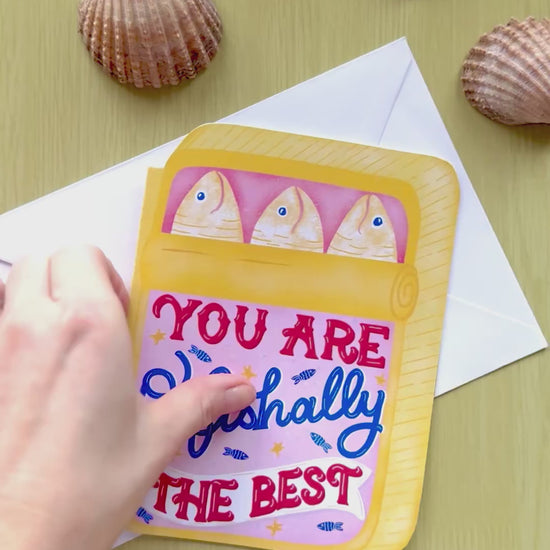 A playful, hand drawn greeting card from my Sardine Tin Collection, designed to make someone smile the moment they open it. This card is illustrated by me and hand cut by hand, making every piece slightly different and truly one of a kind. Inspired by vintage sardine tins and bold colours, it’s perfect for birthdays, thank-you notes, friendship cards, or just because.